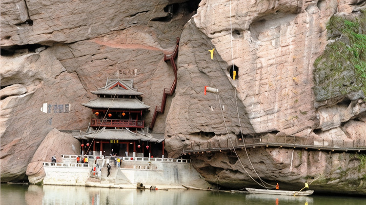 中午在古镇用餐,而后乘车返回正一观。此处的道观比天师府略小,是近几十年重建的所以比较新,可简单看看。出正一观,再走5分钟就到了漂流的起点,由此漂流至终点仙水岩,全程大约50分钟。沿途可观两岸的山景,船夫会结合这些景色给你讲一些太上老君、王母娘娘之类的传说,但要另收费。著名的“十不得”丹霞石景在这一段大概能看到其中三处。