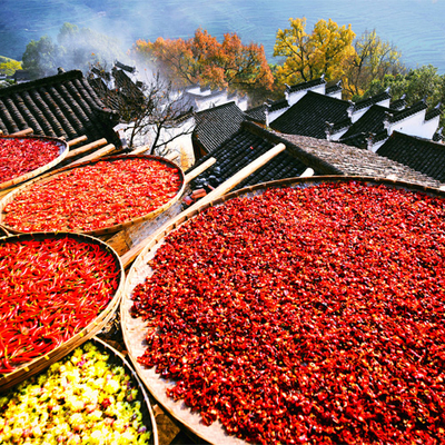 立秋一到,篁岭古村就成了一个天地晒场。来晒秋人家赏红枫,欣赏屋顶晒秋,枫林尽染,体验民风民俗,手摇风车、套南瓜等,感受晒秋人家的乡愁韵味。