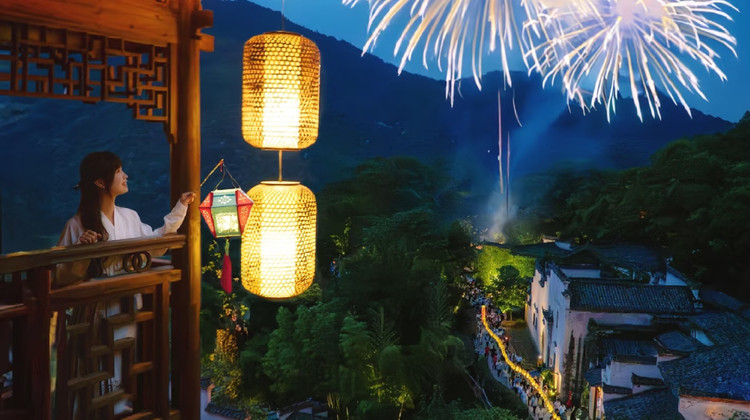 夏天来篁岭,开启一场奇妙夏夜之旅。一览古村夜景,感受篁岭的夕阳晚霞,万家灯火,随着舞动盘旋的百米长龙游走在乡间的路上,提一盏花灯漫步在古朴的街巷,感受魔幻森林的浪漫,在村口欣赏一场复古老电影,逛一逛乡村的纳凉集市。