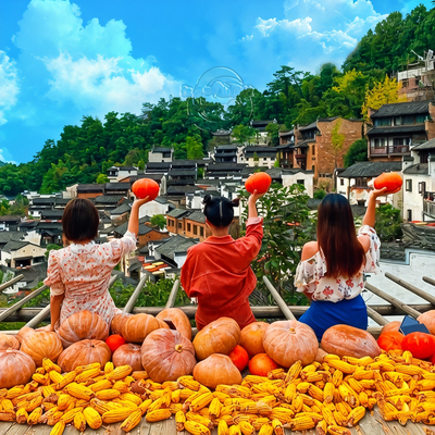 立秋一到,篁岭古村就成了一个天地晒场。来晒秋人家赏红枫,欣赏屋顶晒秋,枫林尽染,体验民风民俗,手摇风车、套南瓜等,感受晒秋人家的乡愁韵味。
