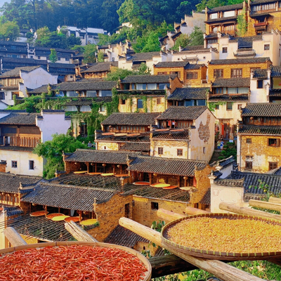 篁岭古村,属典型山居村落,周边千棵古树环绕,万亩梯田簇拥,造就了世外桃源般的山居田园生活。 这里自然环境优美,历史人文厚重,是古徽州历史文化名村。