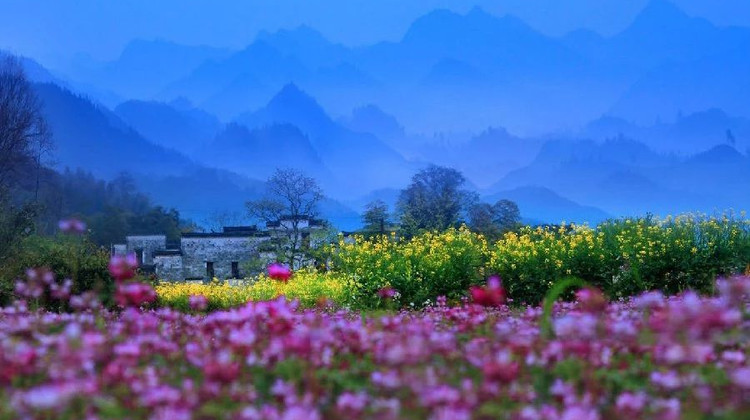 阳春三月,篁岭数万亩层层叠叠的梯田上油菜花盛开,粉红的桃花、雪白的梨花点缀其中,是一副优美的水墨油画,在这里,你可以与大自然融为一体,与花海亲密接触。