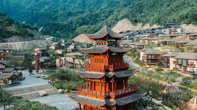 葛仙村度假区位于江西省上饶市铅山县,2016 年 6 月由鑫邦集团投资建设,目前已累计投资超15.69亿 ,背靠千年道教名山葛仙山,定位以打造“江西旅游新地标”为目标。项目分为两期,规划建筑面积约30万平方米,项目核心景区面积650亩,包括集散中心区、葛仙村度假区、天镜台景区三大板块,未来还将继续延山谷向外发展。
