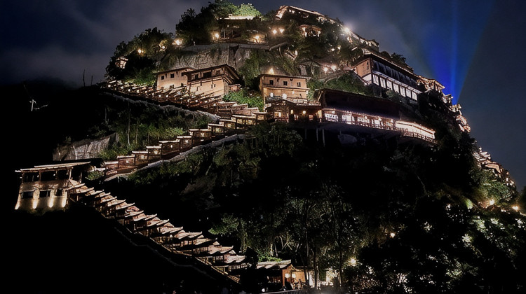 到了晚上,这里将上演隆重庄严的众妙阁秀,现代科技灯光与古建筑的结合如梦似幻,给人带来极具视觉冲击力的体验。