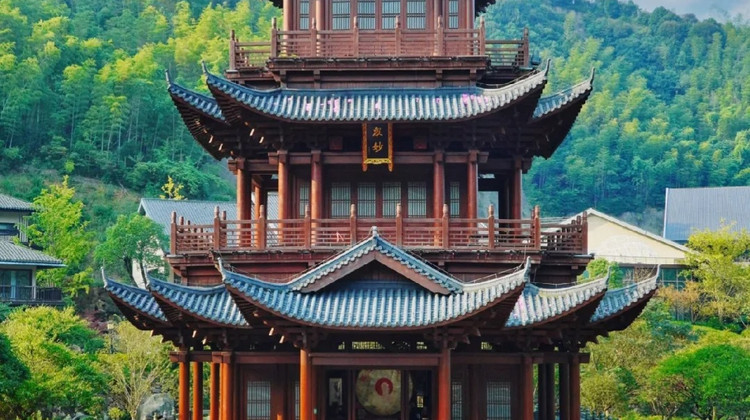 众妙阁是景区的制高点,采用古代建筑结构,主楼高26米,为三层四柱的纯木结构。阁这种建筑,大都是用于藏书、供奉神明的,这也给阁赋予了更多的文化意义。