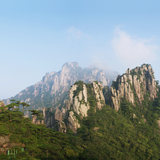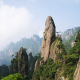 巨蟒出山是一座象形石柱,经大自然长期的风化与重力作用而形成,峰壁峭立,顶部稍平,颈部略细,就像一条破山而出的巨蟒,可谓是大自然的鬼斧神工。它与东方女神观遥遥相对,从金沙索道(东部索道)上山后到南清园景区游玩途中便可欣赏到。