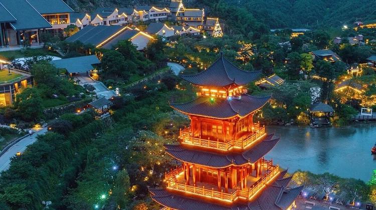 葛仙村度假区位于江西省上饶市铅山县,2016 年 6 月由鑫邦集团投资建设,目前已累计投资超15.69亿 ,背靠千年道教名山葛仙山,定位以打造“江西旅游新地标”为目标。项目分为两期,规划建筑面积约30万平方米,项目核心景区面积650亩,包括集散中心区、葛仙村度假区、天镜台景区三大板块,未来还将继续延山谷向外发展。