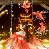 位于众妙阁的水舞台,每晚都会上演一场场真人演绎的大型实景水幕电影,水幕与光影交融,带来流光溢彩的视觉盛宴,演员随着时而激荡时而舒缓的音乐起舞,演绎出一幕幕跌宕起伏的盛世传奇故事。