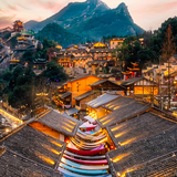 到了晚上,这里将上演隆重庄严的众妙阁秀,现代科技灯光与古建筑的结合如梦似幻,给人带来极具视觉冲击力的体验。