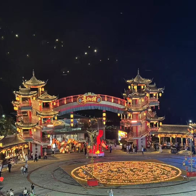 大型灯光秀、水幕演出夜幕降临,葛仙村的月光、灯光与水系、建筑交相辉映,流光溢彩,亦真亦幻,游人恍若步入了唯美梦幻的缥缈之境。穿一身仙服,提一盏花灯,漫步在古朴的街道上,此情此景,宛如人在画中游。看灯火倾城的夜色,穿越千年,体验一把古时的游园盛会。(水幕电影一般从20:00开始)