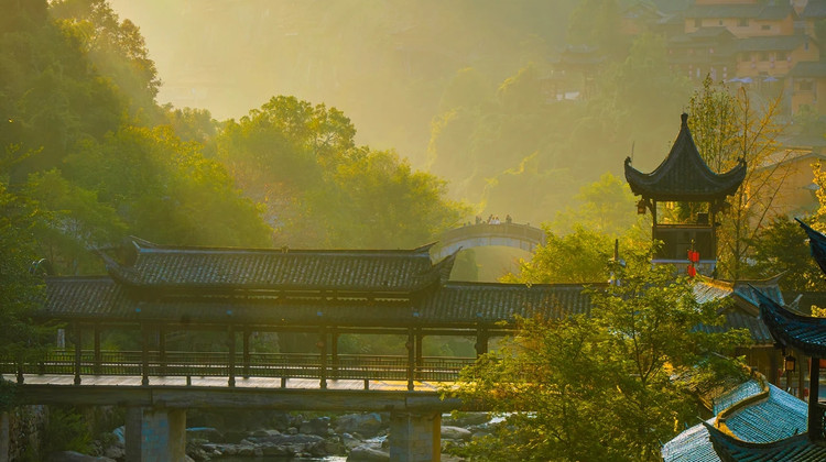 【廊桥】沿河而建是典型的江西风雨廊桥的形态,独特的叠水景观—【三叠水】、【白鹤崖】望仙谷的传奇故事就是从这里开始的。