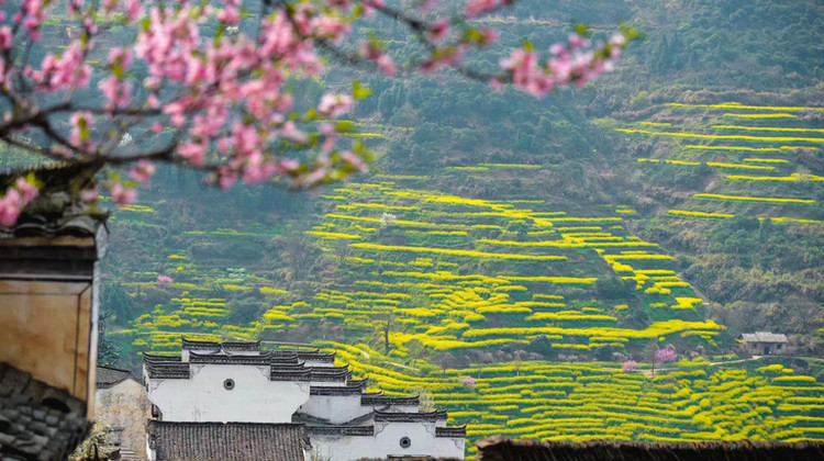 阳春三月,篁岭数万亩层层叠叠的梯田上油菜花盛开,粉红的桃花、雪白的梨花点缀其中,是一副优美的水墨油画,在这里,你可以与大自然融为一体,与花海亲密接触。