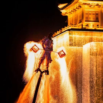 当夜幕降临,山谷被灯光点亮,仿佛天上的星辰洒落人间。崖壁上的仿古建筑在灯光的映衬下,错落有致地悬挂在峭壁之间,宛如凌空仙阁,飘逸在云雾之中。灯光如流水般在山谷中蔓延,流光溢彩,将整个景区装点得如梦似幻