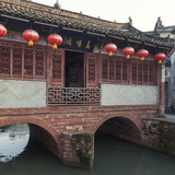 唐模位于黄山市屯溪区北边26公里处,它不如宏村、西递精致,好处在于人少清静。檀干溪穿村而过,溪两边是石板古街和古建筑,在村内古建筑中要属檀干园很有特色。唐模由唐朝越国公汪华的太曾祖父叔举创建,汪氏后人不忘大唐恩典,取名“唐模”,后来许氏投奔汪氏,逐渐成为村中第一大姓。古村东西走向,只有一条主干道,有檀干溪相伴,所以沿着溪水游览即可。村东首立着一棵400多年的香樟树,名“槐荫树”,影视剧《天仙配》中为七仙女和董永开口做媒的就是这棵树。树旁有建于清康熙年间的沙堤亭(八角亭),高三层,三层皆中空,外围有细细的柱子支撑,造型独特。沿着古驿道,穿过为纪念康熙钦点许家兄弟俩同入翰林而建的同胞翰林坊,便算正式进村了。同胞翰林坊不远处便是唐模的特色景点,水口园林“檀干园”,清初的孝子为了满足母亲想看西湖的愿望,建了此园。在庭院清听轩里有肇淳堂、忠烈庙、小私塾等建筑。走出庭院,便来到仿造西湖开挖的小西湖(孝子湖),这里同西湖一样,有“三潭印月”、“白堤”、“玉带桥”等景点,值得一提的是湖心的镜亭里,能看到苏轼、朱熹、文征明等许多书法大家的真迹碑刻。西行到村子的中部,在清代两孔廊桥“高阳桥”上的小房子里,可以喝上一杯黄山毛峰,和当地人聊聊天。过桥,能看到千年银杏。村子的西半段主要看祠堂,村中央的许氏宗祠为总祠,往西依次为官祠尚义堂、经商人家的祠堂继善堂、普通百姓的祠堂骏惠堂三个支祠。此外,村中还有许承尧故居、老作坊等景点可参观。水街也是唐模的一大特色,泛指主干道和檀干溪,溪上架着10座形态各异的石桥。精华段位于高阳桥西边,长40米,有避雨长廊,廊下设美人靠,走累了不妨临水而坐,看看来写生的美院学生、休息一下,十分惬意。唐模里有几处饭馆,比较一般,若要吃特色徽菜,建议在黄山市的屯溪老街,或者东边9公里处的歙县。不过唐模不大,往往会和周边的潜口民宅、呈坎,或者棠樾牌坊群、鲍家花园、徽州古城一并游览,选择住在黄山市区或者其他落脚点似乎更好。