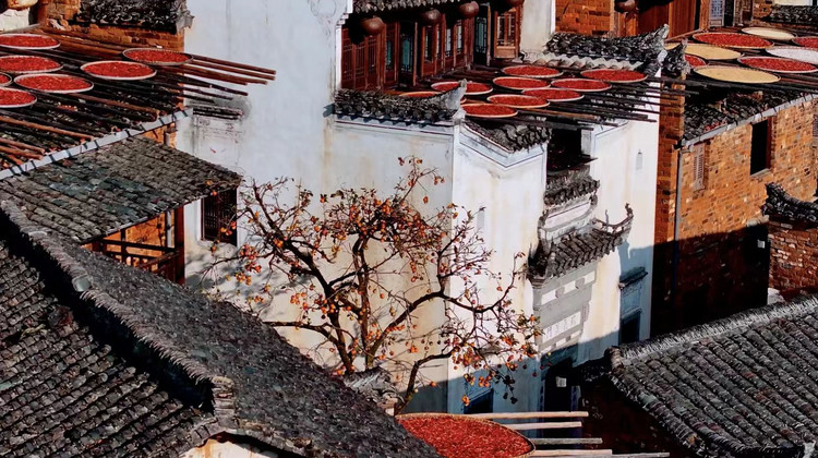 挂在山崖上的篁岭古村,地无三尺平,数百年来,村民早已习惯用平和的心态与崎岖的地形“交流”,绘就出了一处“晒秋人家”风情画。