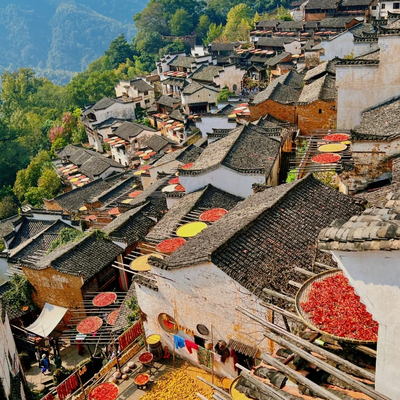 篁岭古村,属典型山居村落,周边千棵古树环绕,万亩梯田簇拥,造就了世外桃源般的山居田园生活。 这里自然环境优美,历史人文厚重,是古徽州历史文化名村。