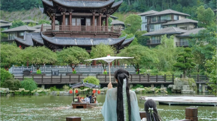 喜欢拍汉服古风照片的妹纸可以在度假区的“松湖烟雨”租一套汉服,价格不贵,还可以让工作人员做古装的妆发。