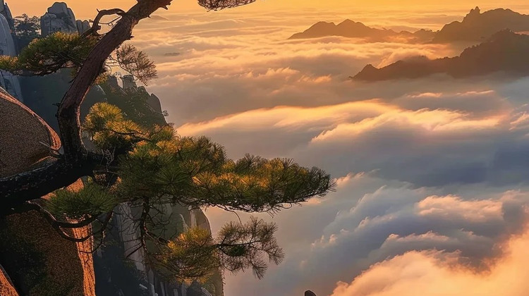 探海松在安徽省黄山的北海景区,位于始信峰顶。经过天桥,可望见一棵古松悬在危崖上,即为探海松。