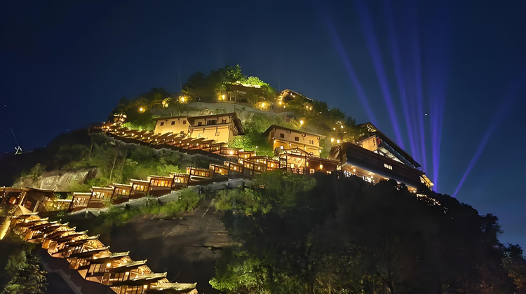 西海岸景区是景区观景开阔的平台,让人称奇的高空栈道也正是位于此。步行在高空栈道上,感受悬崖绝壁之上闲庭信步的乐趣,欣赏连绵群峰、幽深峡谷的壮观之景,还可远看晚霞、云海的绚丽秀美。