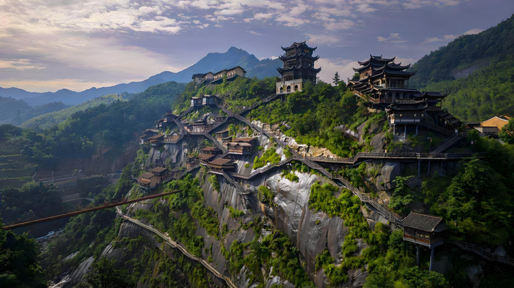 景区的道教精华就在这个景区,以三清宫为核心,汇聚了道教人文景观,堪称道教古建筑的“露天博物馆”。其中保存完好的当属建于危岩之上的宋代小石塔,外观精致,所处位置也让人称奇。除了领略道教文化,这里的也是赏景的好地方,风雷塔是观赏日出云海的佳处,飞仙台是欣赏落日晚霞的佳处。