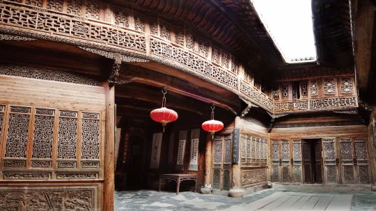 专车前往游览阳产土楼、徽州古城,春节期间将安排瞻淇/汪满田鱼灯,车程约2h,入住黟县酒店。