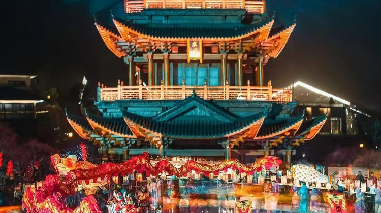 ['道家仙境,融合道家的文化', '遇见铅山大型演绎免费观看', '千灯盛会欢迎游客一起参与', '传统非遗火焰表演穹灵之焰']