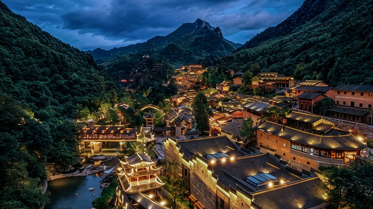 可欣赏葛仙村灯火秘境夜景。葛仙山的夜景如同一幅水墨画,夜幕降临,华灯初上,整个山间都沉浸在柔和的灯光之中,仿佛被披上了一层神秘的面纱。山顶上,灯光璀璨,五彩缤纷,照亮了夜晚的山峦,让人仿佛置身于一个梦幻的世界。夜色中,一弯月牙0挂在空中,如同被水冲刷过一般,显得格外明亮。山峦叠翠,云雾缭绕,仿佛仙雾缭绕,增添了一份神秘与宁静。月光下,一片片的云朵像一群群银羊在游移,增添了一份生机与活力。