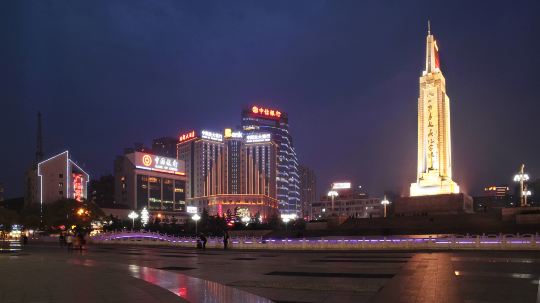 南昌八一广场原名人民广场,是历史文化名城南昌的中心广场,位置在八一大道、北京西路、中山路、孺子路等市区主干街道的交汇处,同时它也是南昌市民活动的中心。八一起义纪念塔为广场中的标志性建筑,高53.6米,由台基、塔座、塔身、塔顶四部分组成。广场中心南面设置了高高的升旗台,升旗台北侧,一方高大的汉白玉镌刻着“军旗升起的地方”,突出了南昌在中国革命中的特殊历史地位。