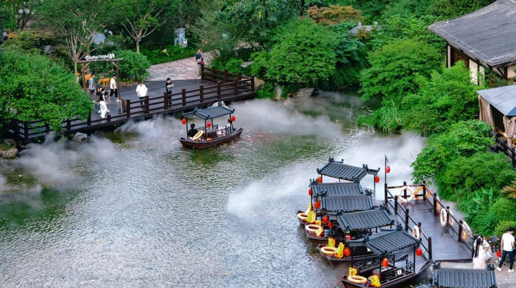 葛仙村度假区位于江西省上饶市铅山县,2016 年 6 月由鑫邦集团投资建设,目前已累计投资超15.69亿 ,背靠千年道教名山葛仙山,定位以打造“江西旅游新地标”为目标。项目分为两期,规划建筑面积约30万平方米,项目核心景区面积650亩,包括集散中心区、葛仙村度假区、天镜台景区三大板块,未来还将继续延山谷向外发展。