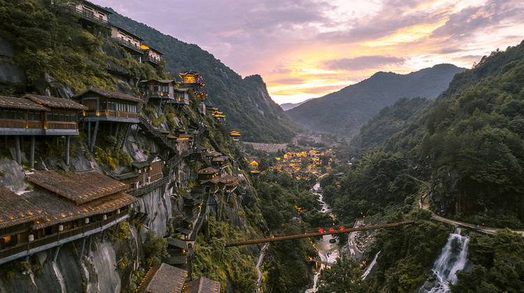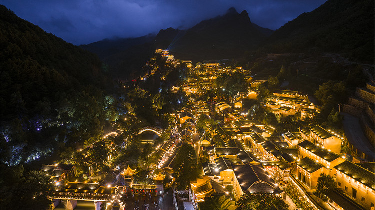望仙谷的夜景之美,可用"震撼"来形容,如果说白天是仙境,夜晚就是幻景。 从悬崖建筑方向看村庄,万家灯火、繁华落尽。从村庄方向看悬崖建筑,如天上人间、神秘莫测。夜景如一首华章,有平铺直叙、有峰回路转、有高潮迭起,打造了一个灯光的视觉盛宴。