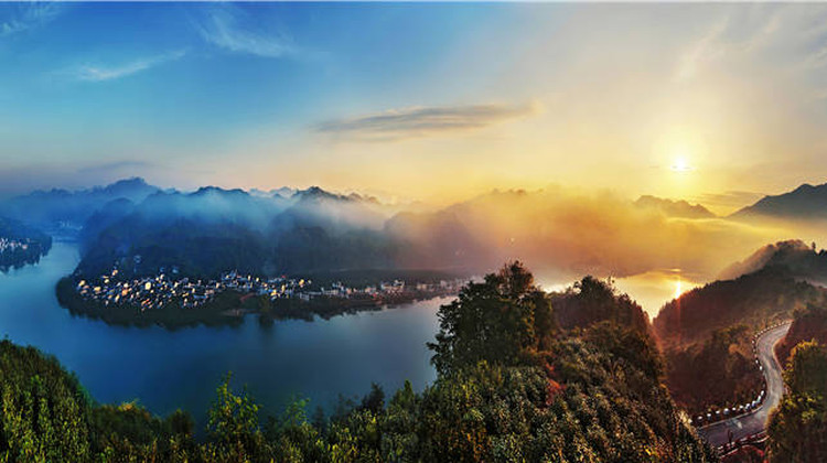 新安江山水画廊,国家AAAA级旅游景区,位于中国历史文化名城歙县境内,全长约百里,是黄山—徽州古城歙县—千岛湖黄金旅游线上的一颗璀璨明珠。这里两岸生态环境很好,呈现高山林、中山茶、低山果、水中鱼的立体生态格局,与掩映其间的粉墙黛瓦的古村落、古民居交相辉映,是画里青山,水中乡村,构成一幅美妙的山水国画