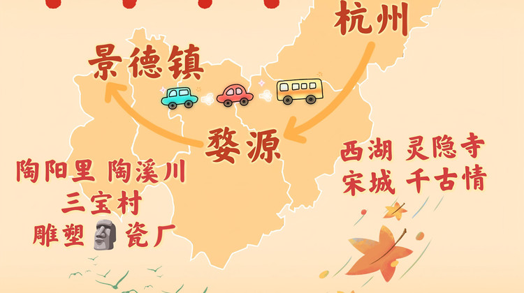 - :🌅西湖之美, 美在山水相依的自然景致! 美在底蕴深厚的人文风情! 既有 “淡妆浓抹总相宜” 的湖光山色! 又有流传千古的传奇故事! 🍁灵隐寺 半部中国南方佛教史的厚重底蕴 精美的建筑与雕刻艺术 🍂篁岭 千年历史古韵、金色的晒秋景观! 烂漫的梯田花海与独特徽派建 🌟婺女洲 欣赏打铁花与烟花秀! 沉浸式体验千年徽州文化。 🏺景德镇 千年窑火不熄,是当之无愧的世界瓷都 瓷器“白如玉,明如镜,薄如纸,声如磬”