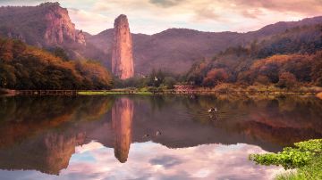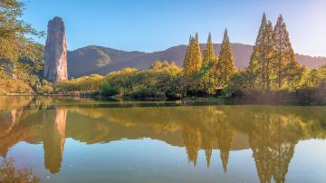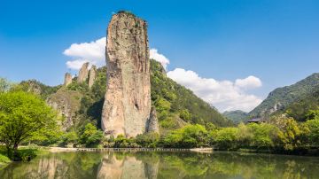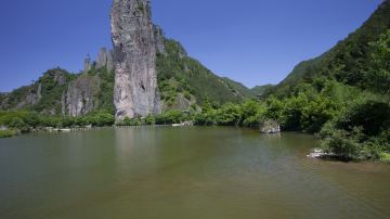 缙云仙都景区位于浙江省丽水地区缙云县境内,因为风光异常秀丽,众多影视剧先后在此拍摄外景,如《天龙八部》(张纪中版)、《笑傲江湖》(于正版)、《古剑奇谭》等,在游览途中,你可以寻找一下剧中场景。另外,你还可以在步虚山、朱潭山上俯瞰一柱擎天的鼎湖峰,和它映在好溪中优雅的倒影。