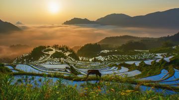 云和梯田景区拥有华东地区规模较大的梯田,这里除了层层叠叠的梯田和云海日出,5-6月播耕时还能看到漂亮的水景,10月稻谷成熟和冬天的雪景也分外迷人,吸引了不少摄影爱好者来此采风。